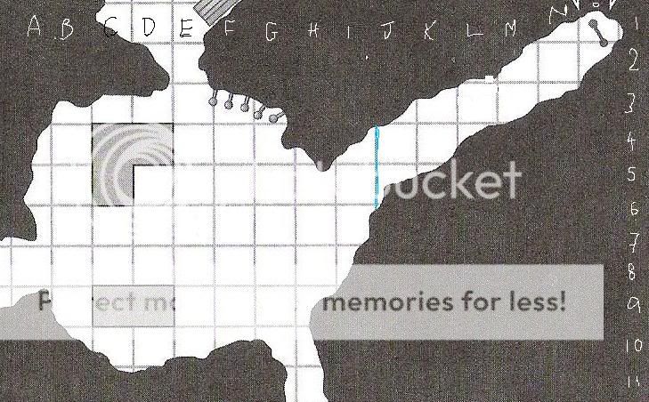 Okay above is the map of the First room located at the end of the corridor where the ladder descended into. You will need to select which square you're standing in to the right of that blue line indicated on the map as you wouldn't have passed it and a Perception check and once you've all responded I'll post the description of the room