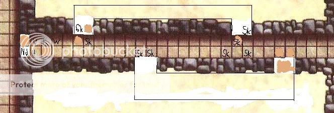 shift back one square to SW, if N was up on the map, to avoid OAs. Nimble strike on SK in hallway in front of me. (+8 vs AC, 25, if hit, d10+5, 14 hp damage) and I shift back another square and now I am next to Wind in the hallway. I shot one of the guys marking me so I don't take a -2 penalty, right?WAIT! I changed my mind. I still want to go to the same spot and shoot as I posted before, but I want to use the shift from the Nimble Strike power to get there. Then I can use my move to go to the square behind where Richard is.