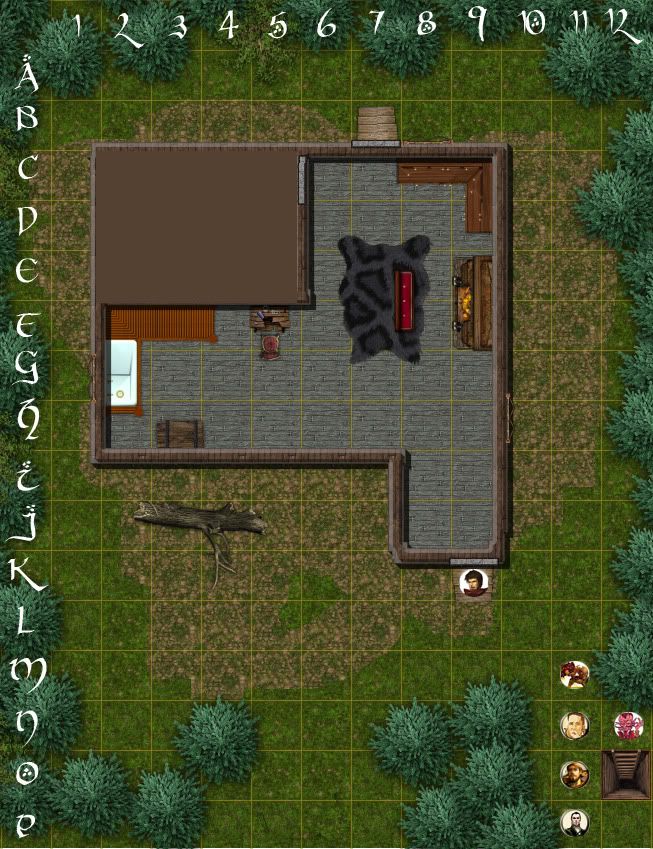 Listening to the two bickering about which idea was more sensible, Karn does the only thing that HE sees as the sensible tactic and sneaks his way towards a window to sneak a peek at what might be inside. Doing an excellent job of remaining unseen, Karn practically melts into the shadows of the trees as he approaches the house and uses his keen elven gifted vision to see what might be inside.