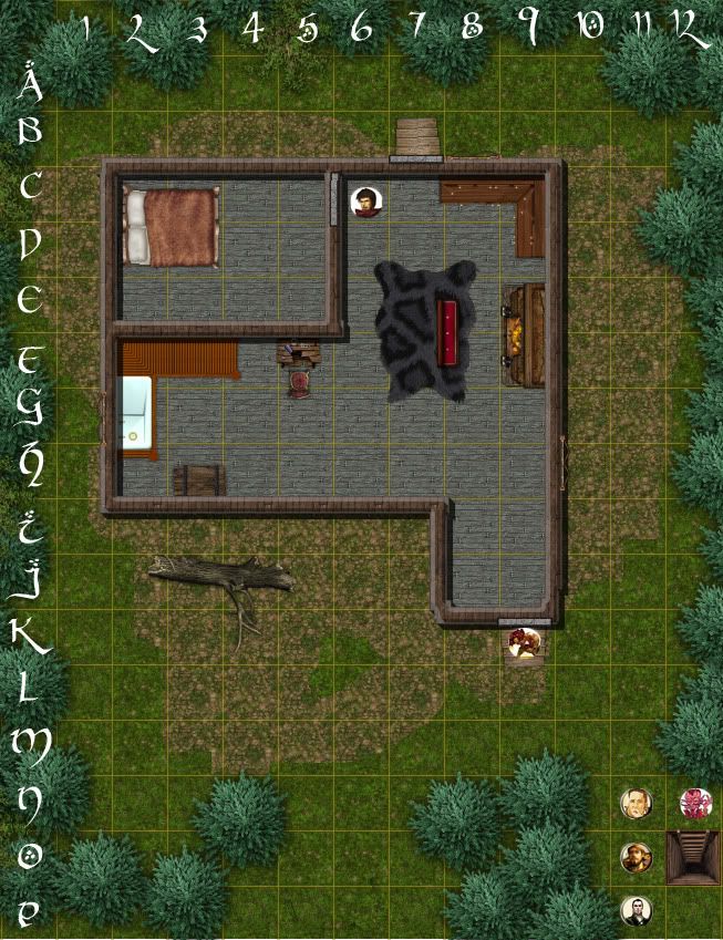 When Karn comes to the bedroom, plants his hand on the handle and slowly slides the door open, He is amazed to find that the house is entirely empty. The doorway he stands in leads to a small bedroom with a fairly large size bed covered with a couple animal furs. The room itself is rather empty, the building as a whole looks very much like a hunters lodge.