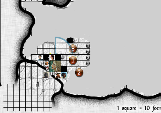 Rhianna will wander a bit closer than she should, standing alongside the frontline warriors, until the bad guys get close enough to catch in a casting of burning hands, at which point she will cast the spell and run like hell (though, since this is a readied action, the latter part will likely have to wait until her second action).