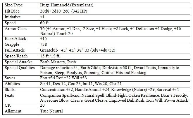 Since I'll be giving him Belt of Magnificence (+6 to all stats is something my group could perhaps handle) I won't use Belt of Battle, because he already has a Balor and Nulonga at his side and he himself is effectively two creatures. With his CR and two adds, it's a fair fight.