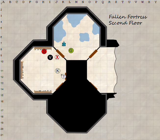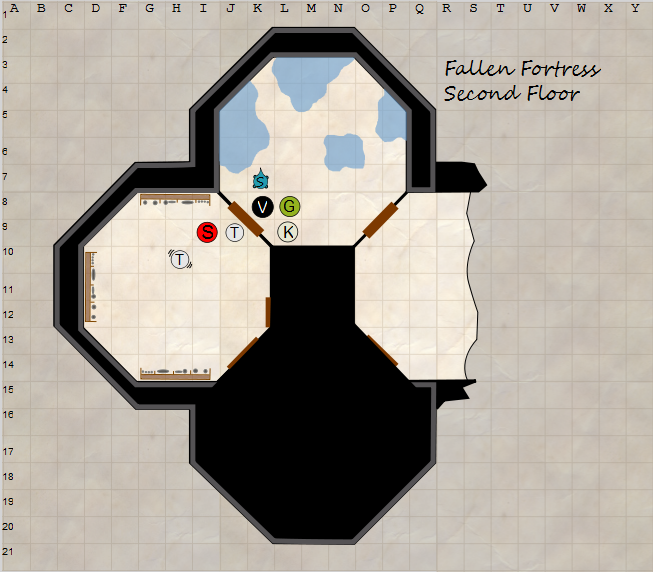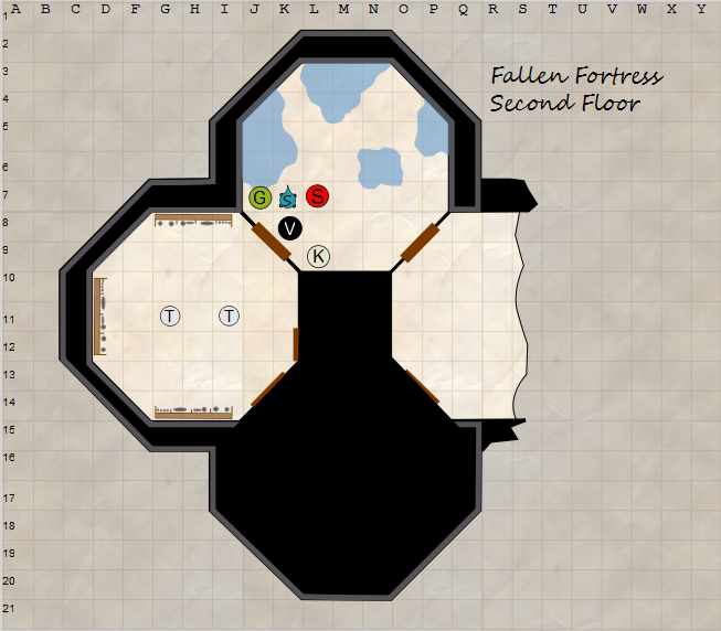 I'll have a map up later tonight. They are standing in the middle of the western wing which is clear. There is five feet between them. Belros is in front of the door with Kendrick to his right, Variel to his left and Kaldar behind him. If you would like to wait to post actions until seeing that map I don't mind.