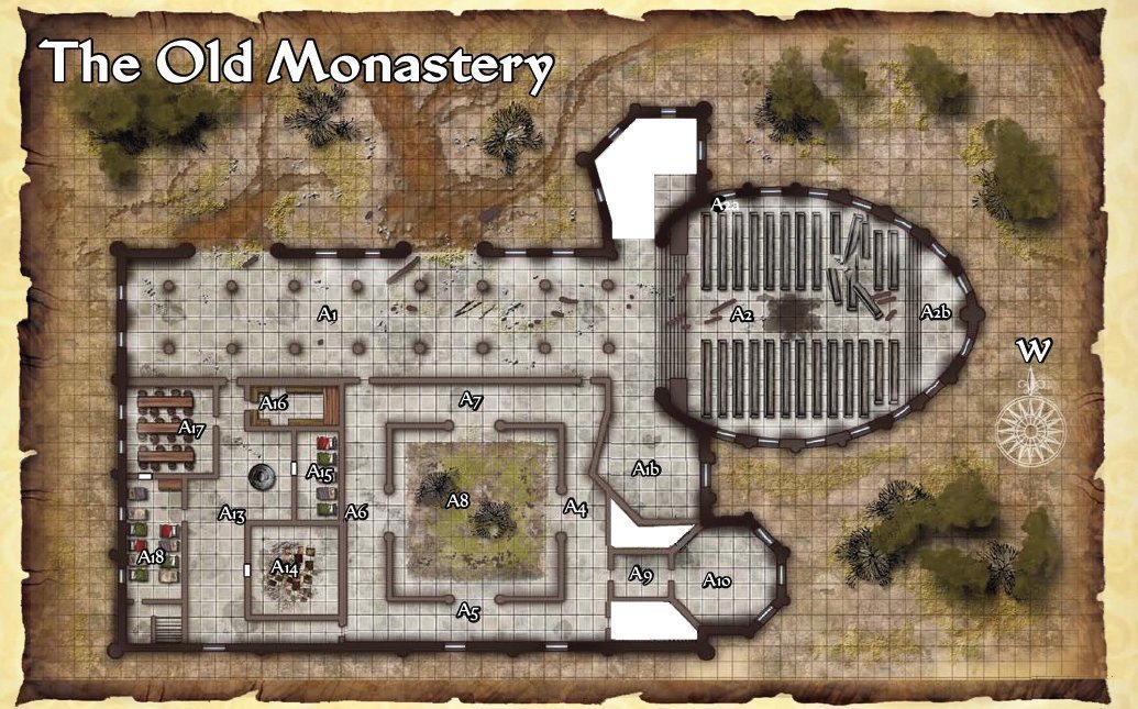 Revised map - A16 is the kitchen and A17 appears to be a mess hall. Sorry about that...
