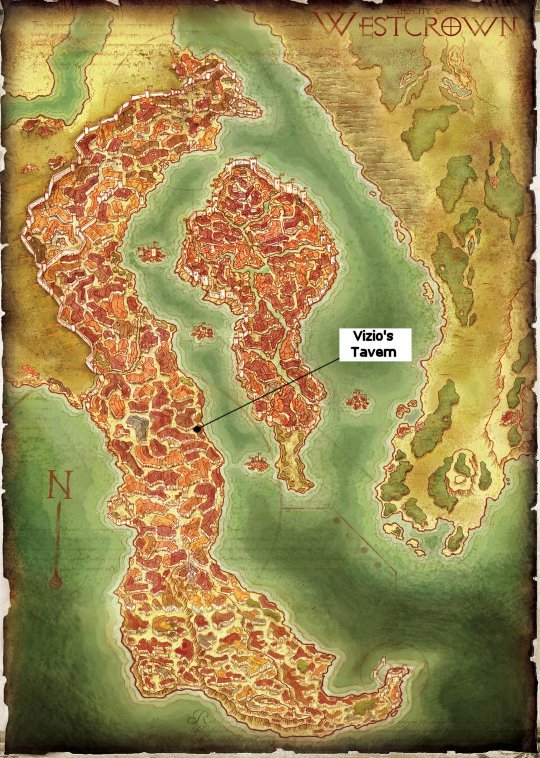 Estel: Vizio's Tavern is named for the family that once ran the establishment. It was a place where merchant guards went to relax, gripe about their employers, and look for more work. Several months ago, however, the Vizio patriarch passed away, and the surviving family moved out of Westcrown to go live with kin in distant Corentyn. The tavern has stood empty since.