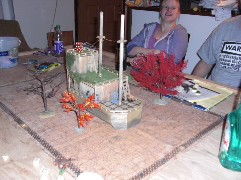 Meanwhile, in the galley, Poog vomits a gout of flame at the large dog in front of him, half intentional and half the result of witnessing the atrocities of this filthy room. In the mud below, Chuffy moves to the bottom of the gangplank and retrieves a tindertwig, ready to light a skyrocket at Vorka. Above, Reta moves down the wall to assist (literally) Mogmurch with what she deems to be a suppository of cure light wounds.