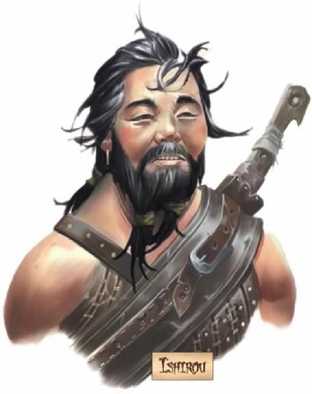Since Ishirou is not a toothless, ancient old man as his picture would suggest, I tried to age his portrait to a more reasonable "older than he appears" late 20's/early 30's. Probably still not quite right, but when starting with Herman Toothrot and not Guybrush, I think it'll do.