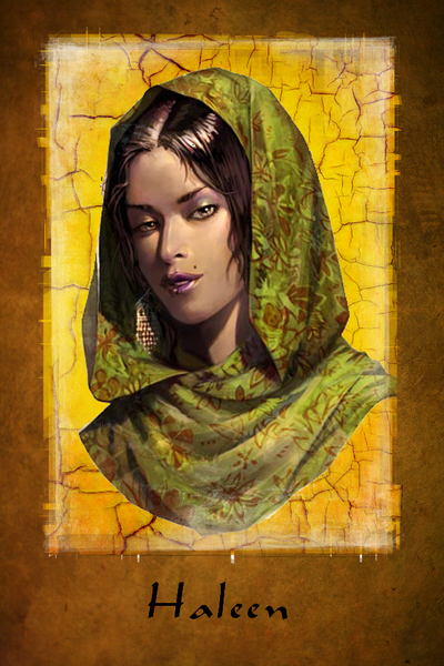 Short version: A freed concubine turned cynical and seductive courtier, she uses social manipulation to outmaneuver her foes. Her player "cast" Laetitia Casta in the role, if that matters.