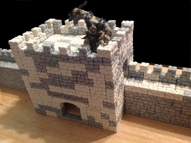 @DSXMachina - Actually the ogre is from the new Rise of the Runelords Prepainted miniature line from WizKids - I agree that it is very well done. As wellsmv has pointed out I am using Hirst Arts molds to make the blocks. The fortress is modular. The two walls sections are not connected to the large garrison piece.