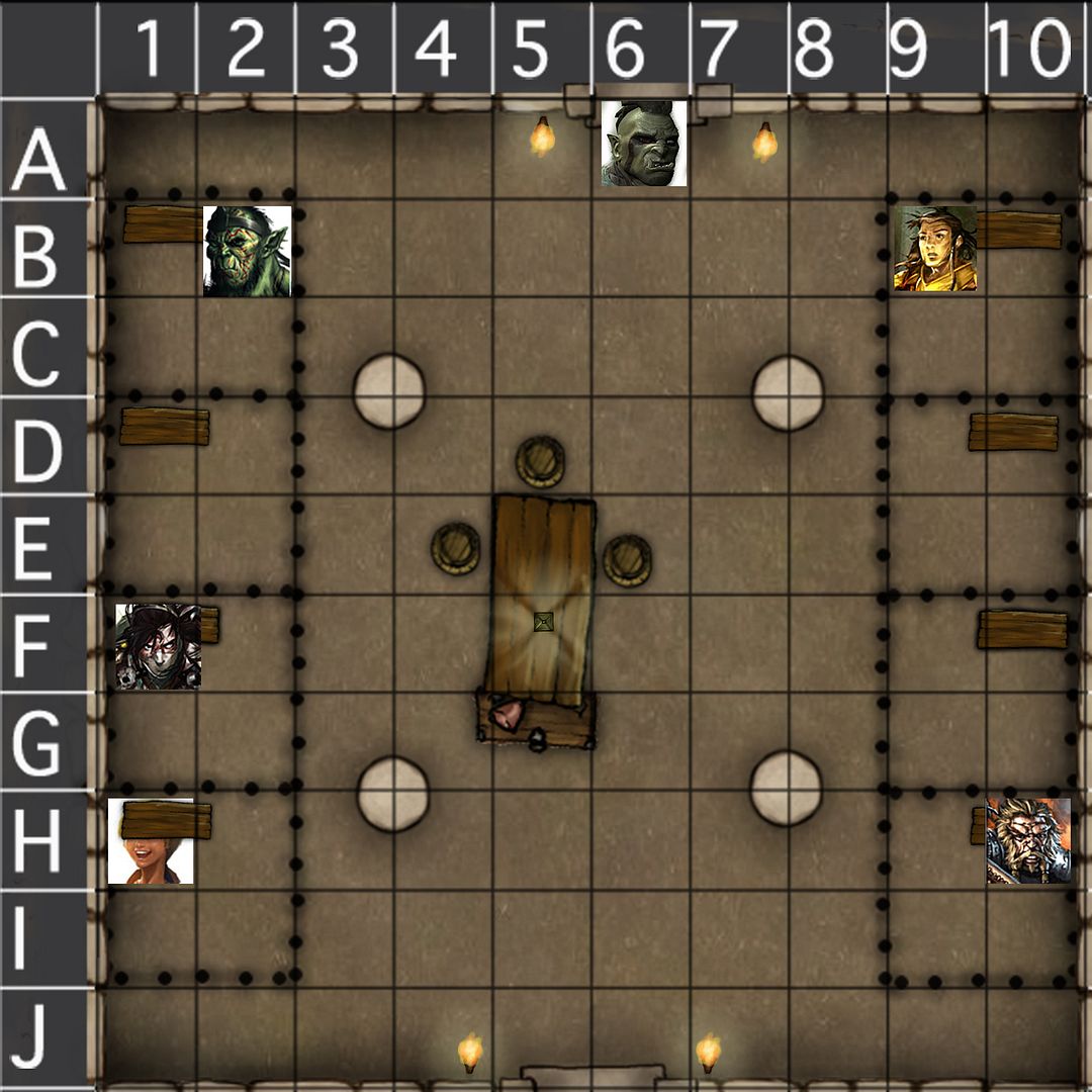 The gullible orc starts to turn away when he suddenly freezes in place. The newly risen fellow in the northeast cell begins weaving an unnaturally compelling tale just as the veteran orc steps into the room.