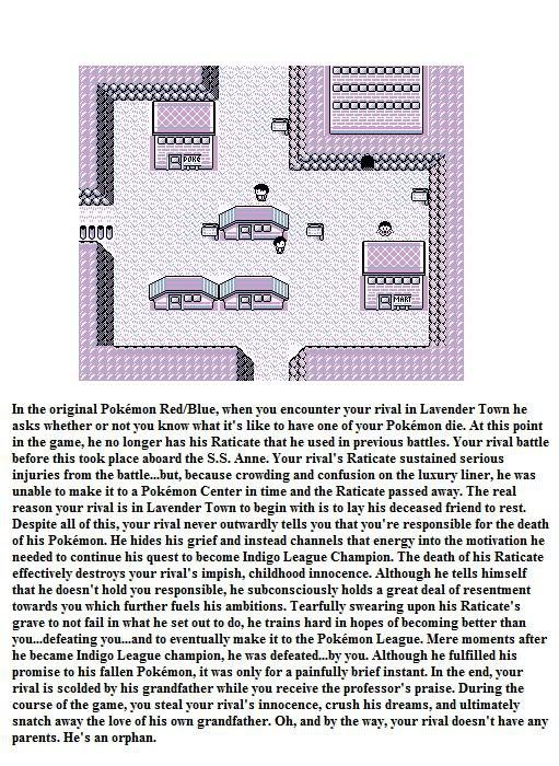 K177Y C47 wrote:To drive your point even farther, especially in the original Red, Blue, Yellow, Gold, Silver, and Platium versions your rival is a person who does just that, use his pokemon as tools and nothing more. Where as you are shown as a person who loves and cares for his pokemon and the Prof. is always chiming in how it is your love and friendship with your pokemon that allows you to defeat everyone.BS, you beat your rival because you learn the value of grinding...I mean, training.