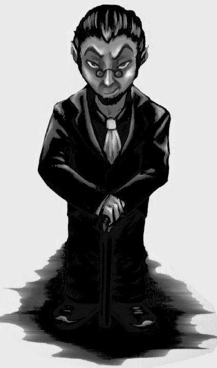 After a few moments, one of the doors opened, and a halfling entered the room. He wore a dark suit, a gray cravate, and a a pair of _pince-nez_ spectacles. He appeared slightly surprised at the party's arrival, but quickly introduced himself as Mr. Haddy, and assumed the role of a mortician, offering condolences for the loss. Don took lead, explaining that a dear friend had passed in the night, and that they wanted to hold a funeral here, with public viewing of the body. The halfling led them through one of the doors to a cramped and cluttered office. While going through the business of organizing a funeral, Darshan noted that the halfling appeared to be distracted, and was rushing through the procedings.