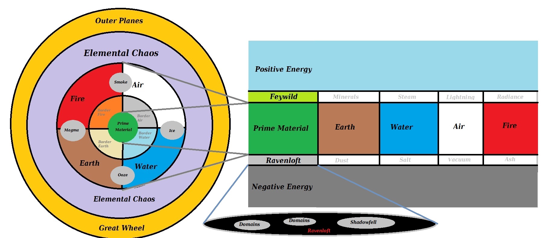 Lots to think about. I think it will come down to whether or not I bring in the elemental planes. I feel like I need the energy and transitive planes, or life just doesn't make sense. Either that or cherry pick what I want from them and place that into the material and/or transitive.