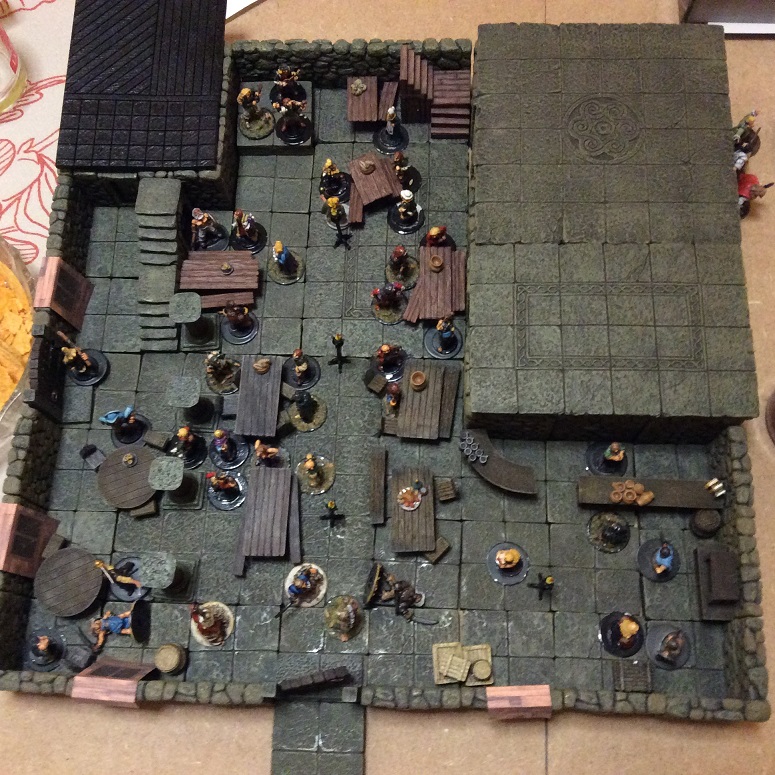 In fact, there are no maps. There are a number of pictures of the Crooked Hand tavern, set up mostly with Dwarven Forge tiles, one of which could be used as a battle map. The adventure is described under the premise that players would draw out their own battle maps on a blank grid, use their own terrain, or simply play "theatre of the mind" style.