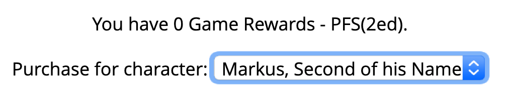 * But if I try to spend 0 game rewards, to buy a 0 game rewards item for my eligible character, I am told I'm not eligible. (image)