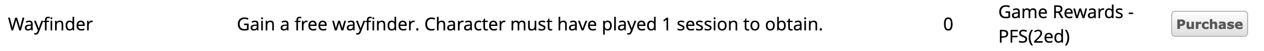 OK, that's fair. But my read of this is correct, my 2e character with n>=1 session should simply be able to purchase the wayfinder for 0 points, right?